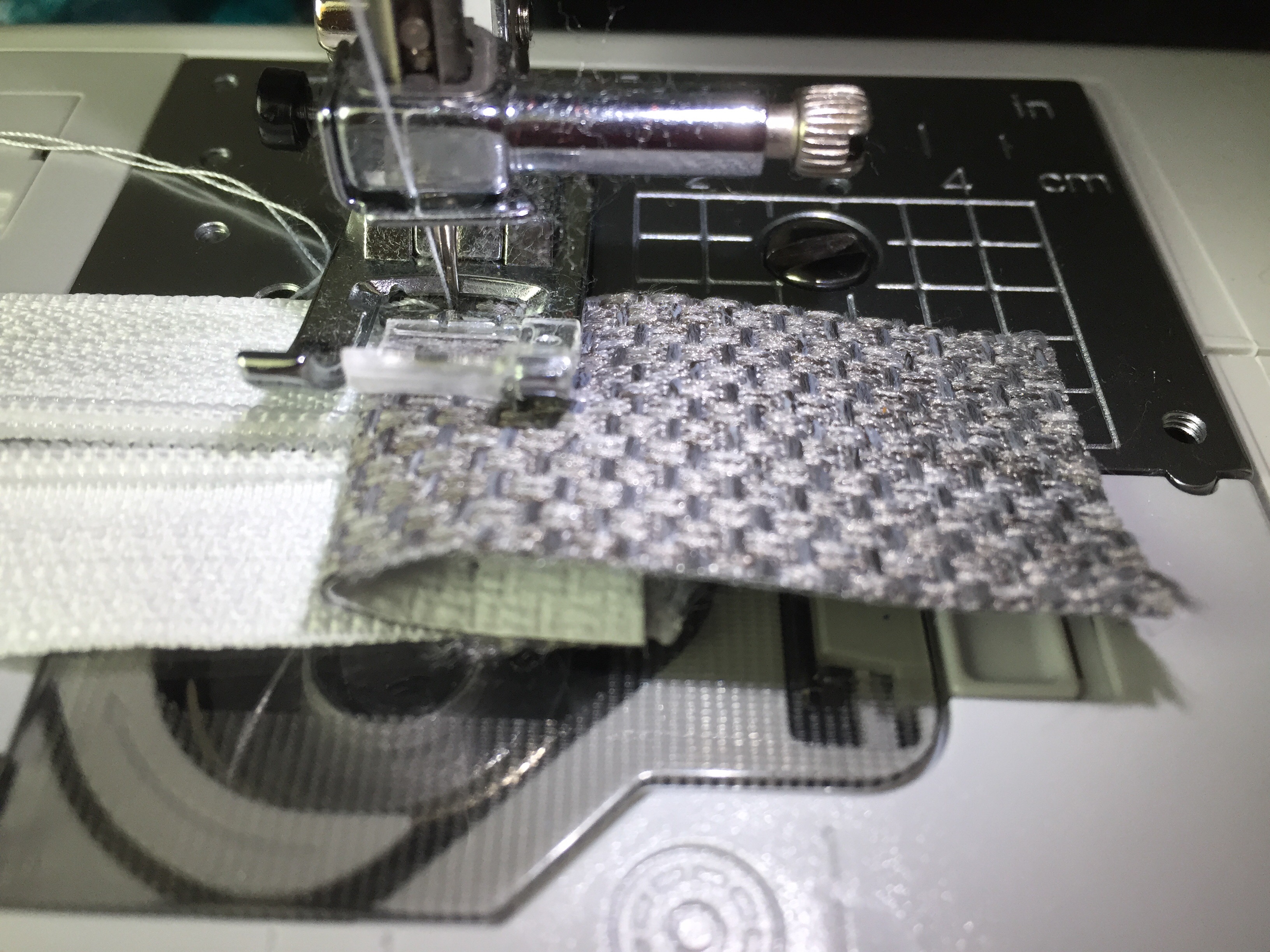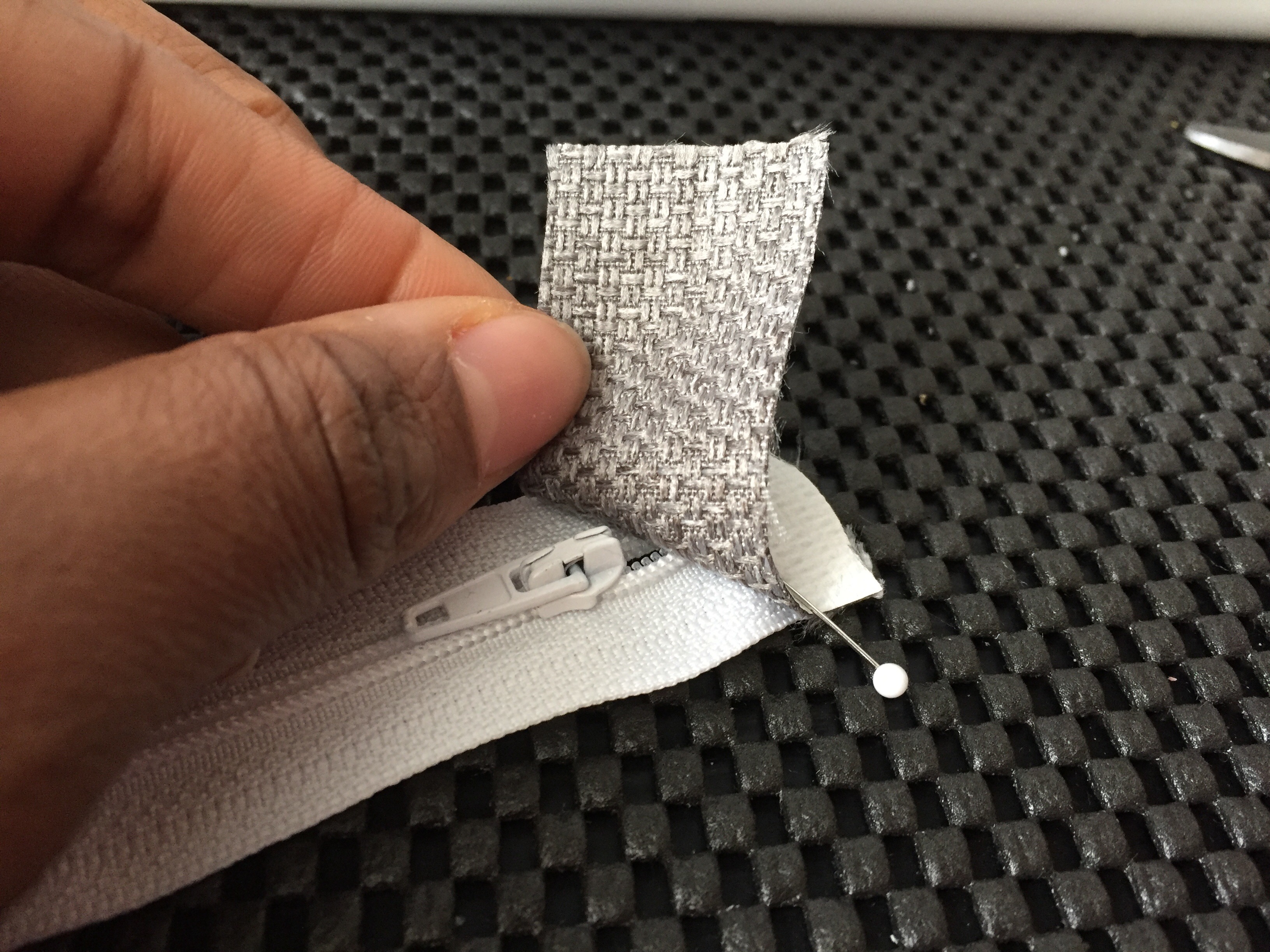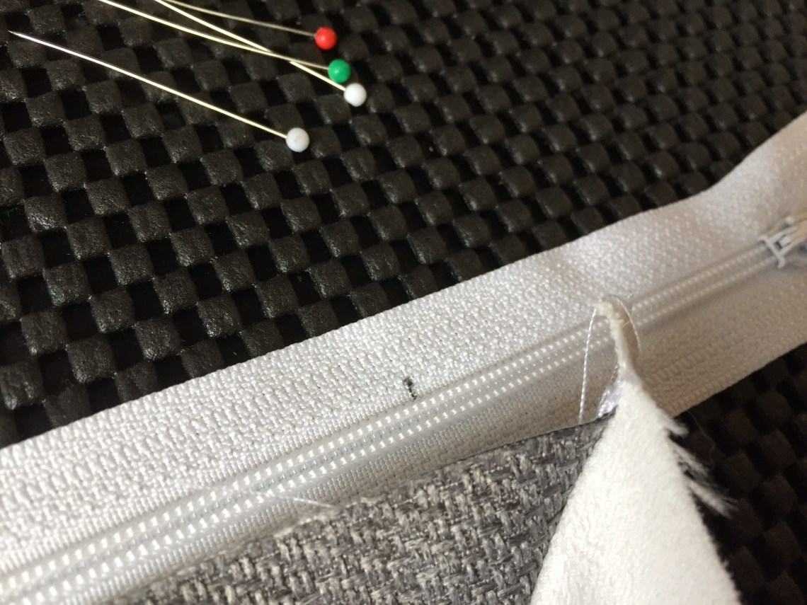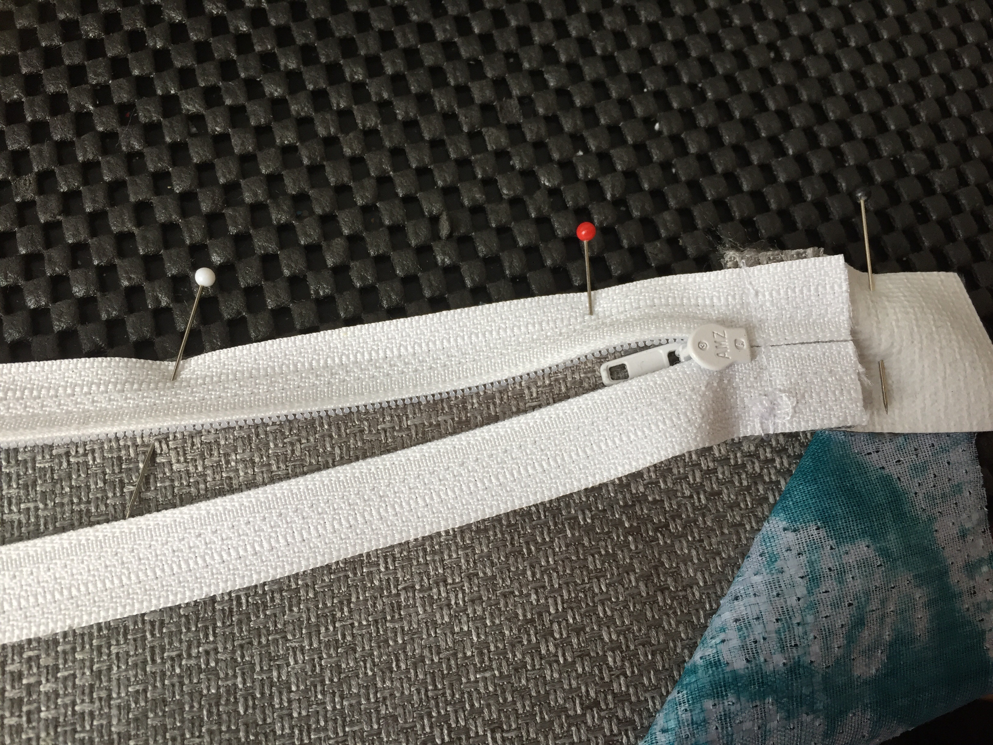 Fixer avec des aiguilles puis coudre avec le pied fermeture.