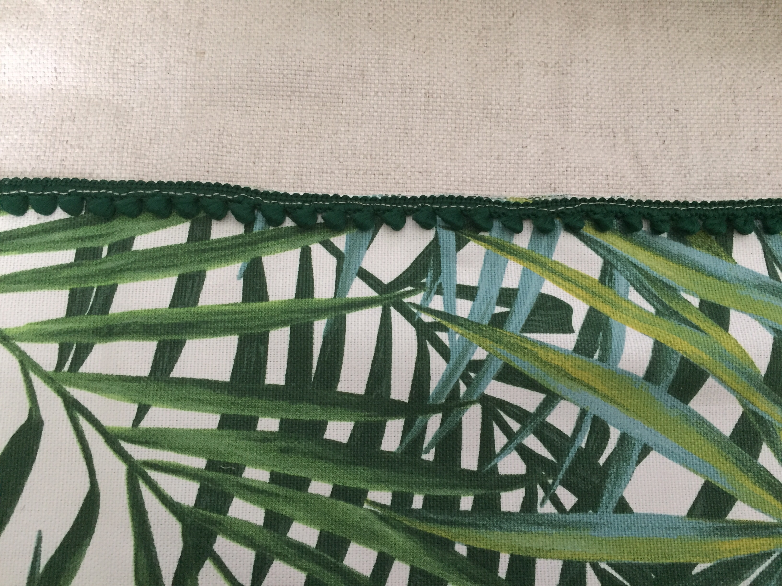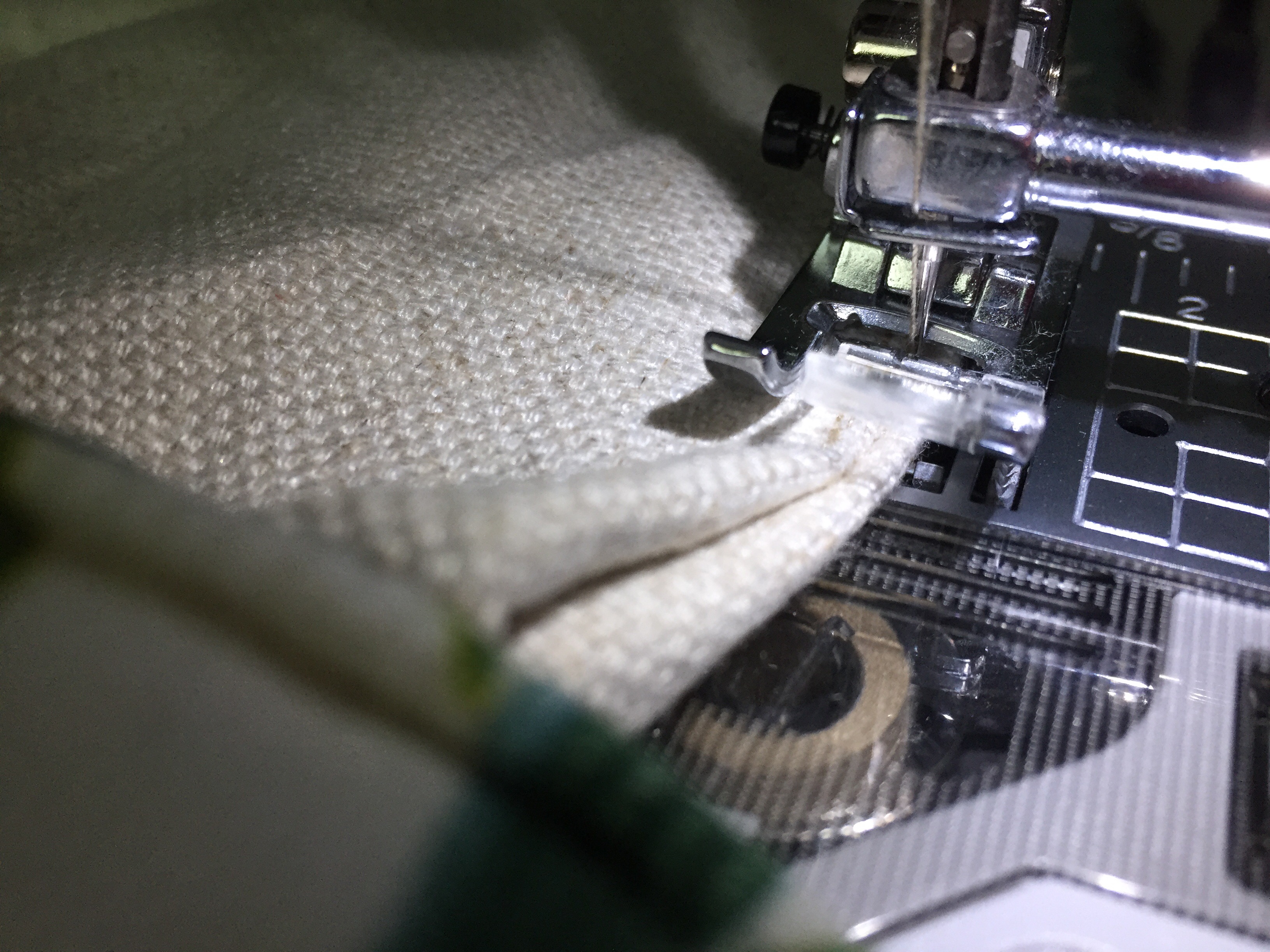 Pour ce faire, placer le bord du passepoil sur le bord du tissu supérieur comme ici :