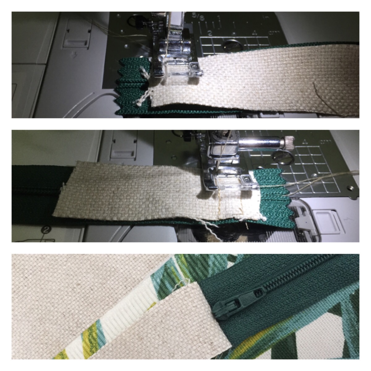 3- poser la fermeture éclair (à l’aide du pied de biche adapté)