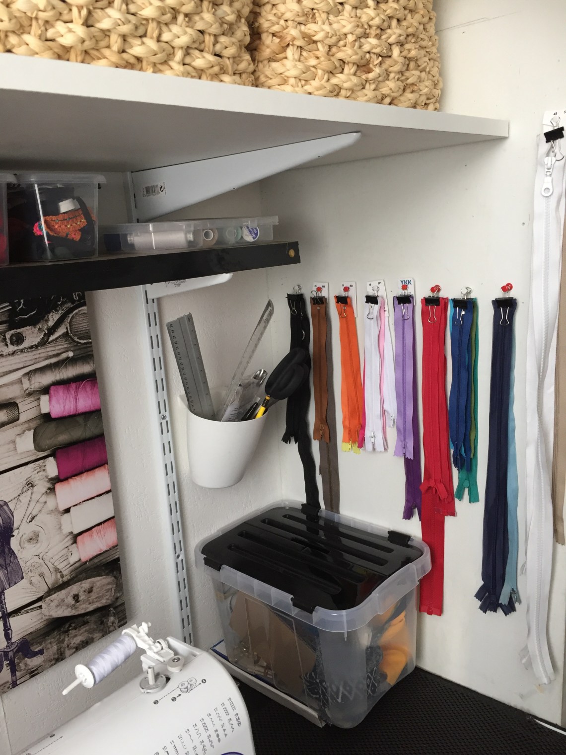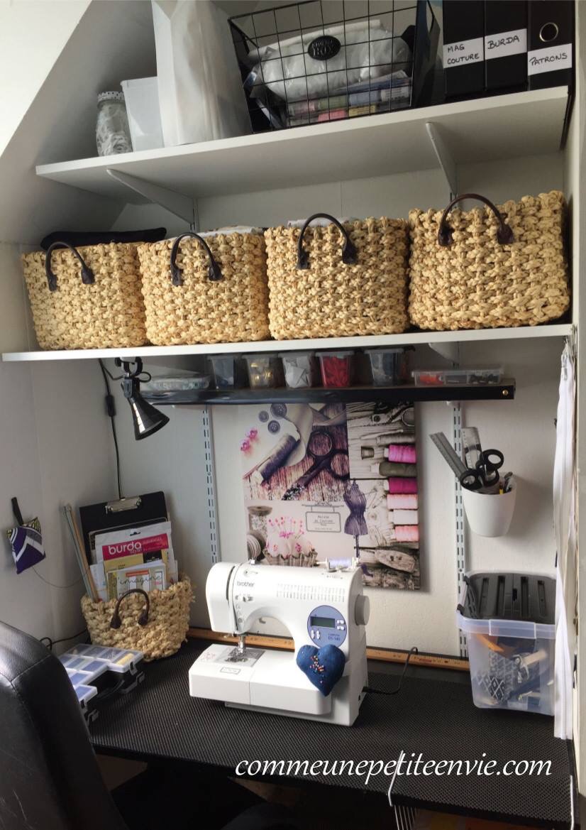 img_8545Comme promis, aujourd’hui, je vous parle de mon coin couture et de mes astuces de rangement.