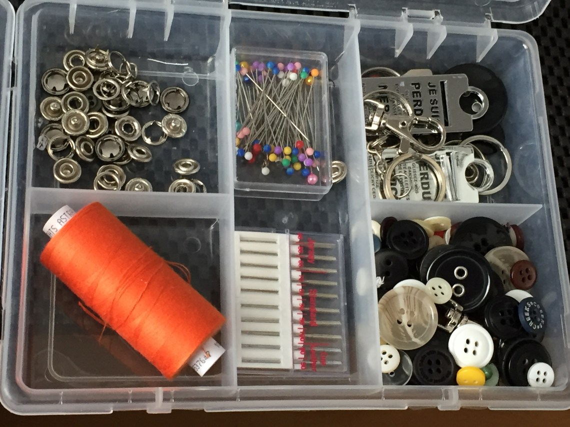 Une boite en plastique pour chacun de ces éléments de mercerie