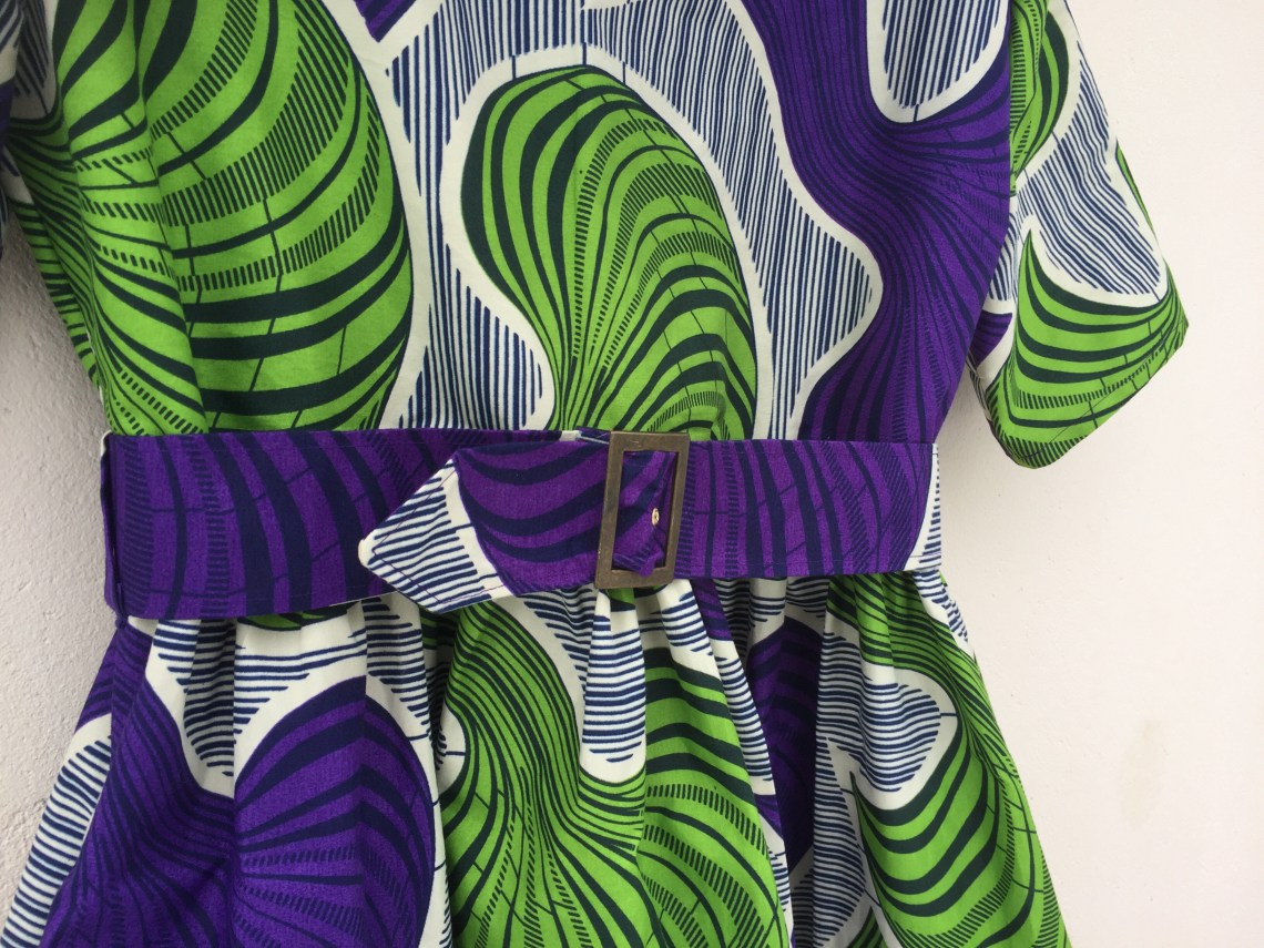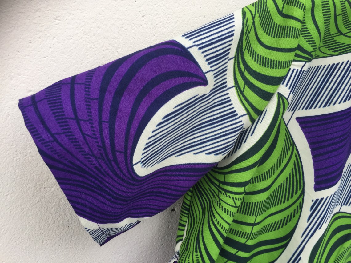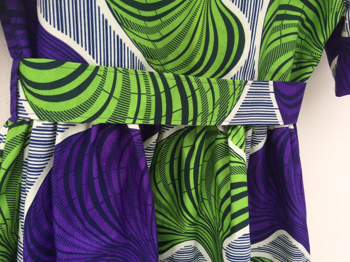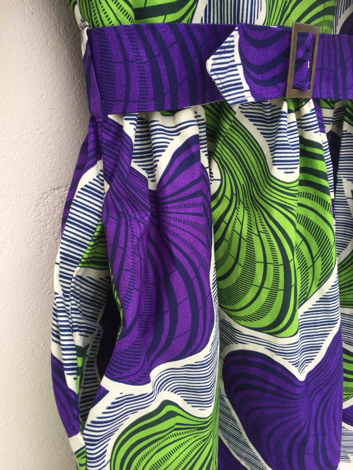 Réalisée dans du wax, ma version a consommé, à la louche, 4m de tissu dans une laize de 1,10m.