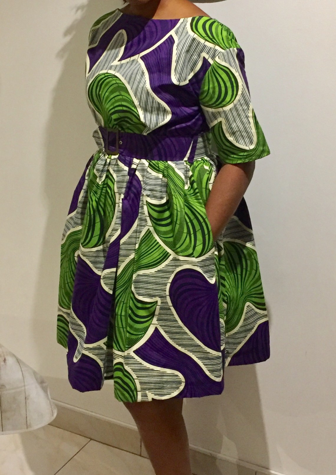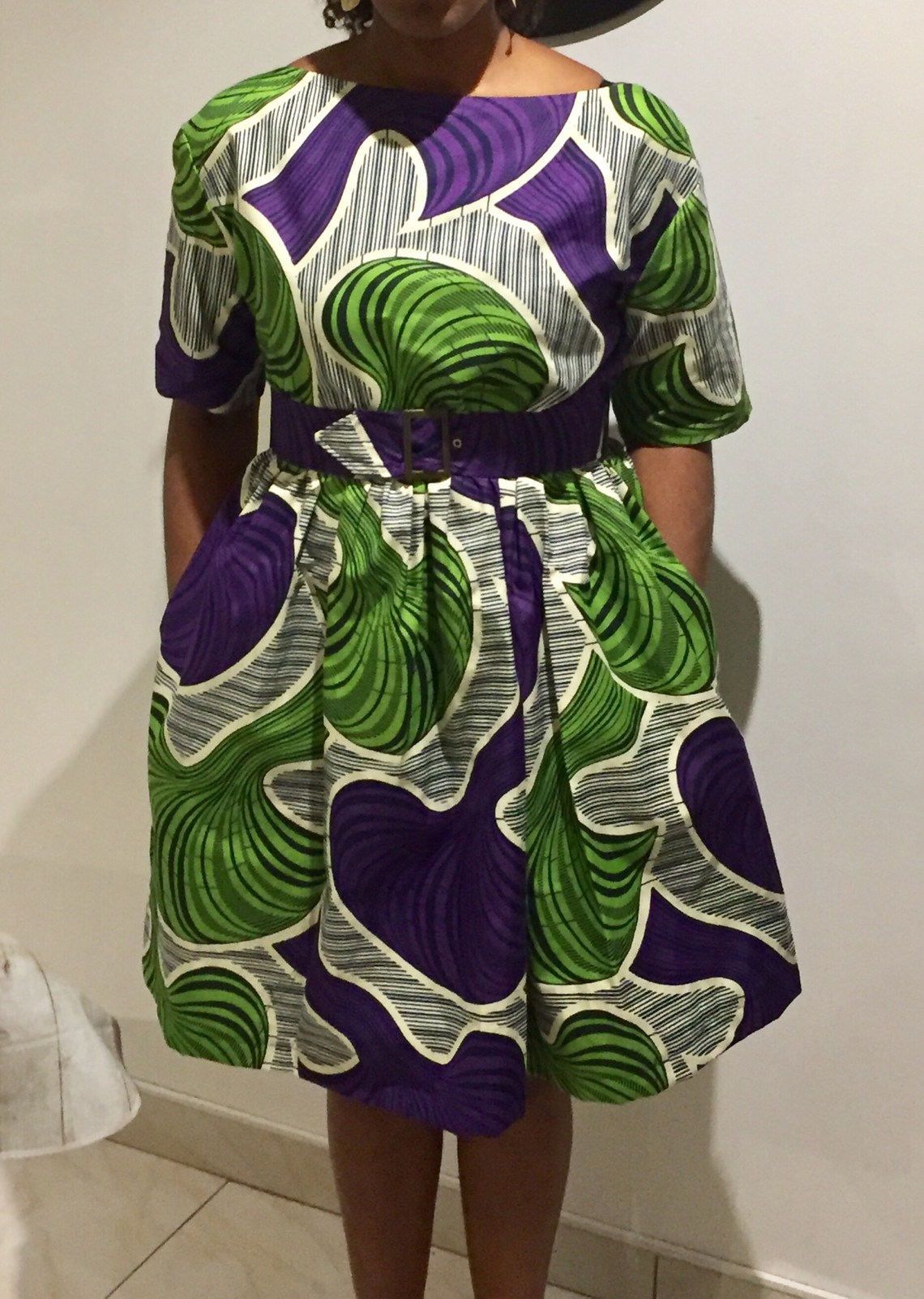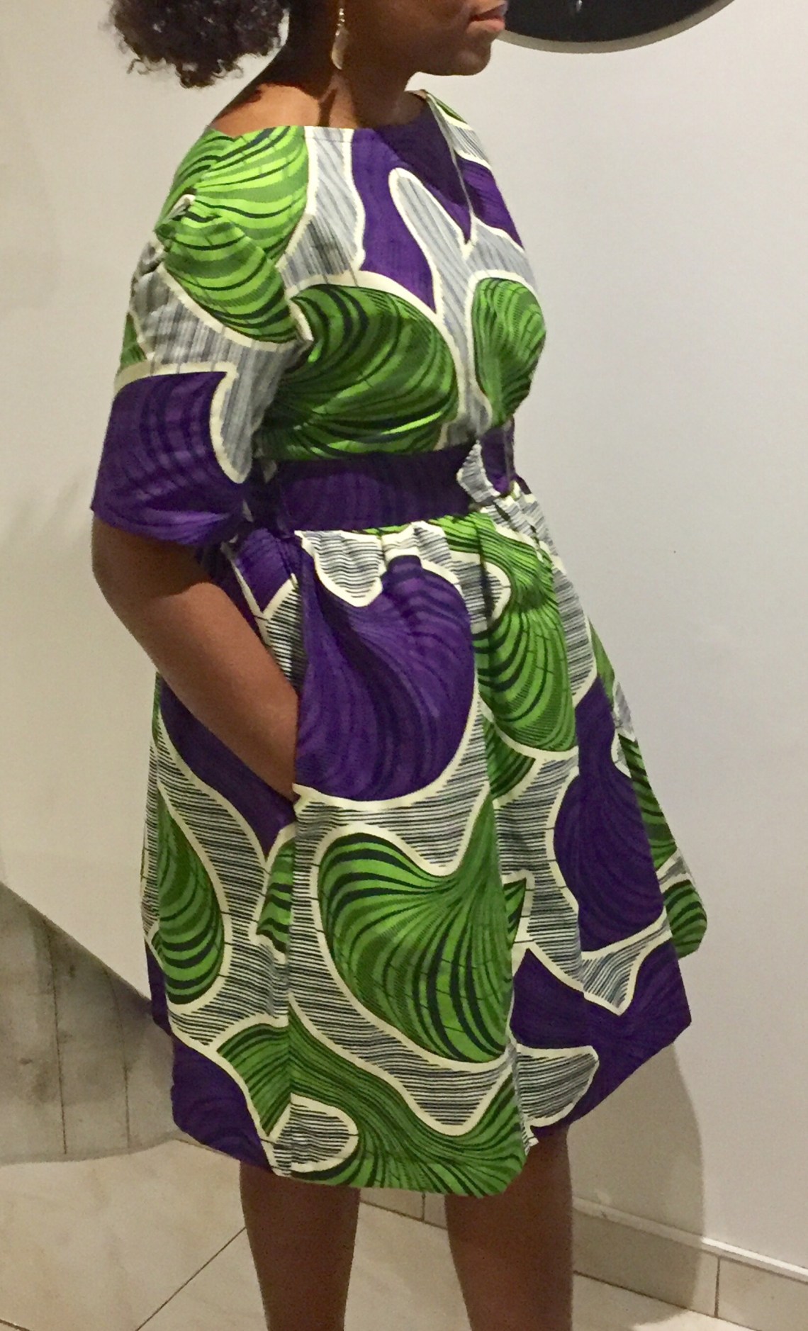 Trop contente de vous présenter ma petite dernière : une robe Frida en wax.