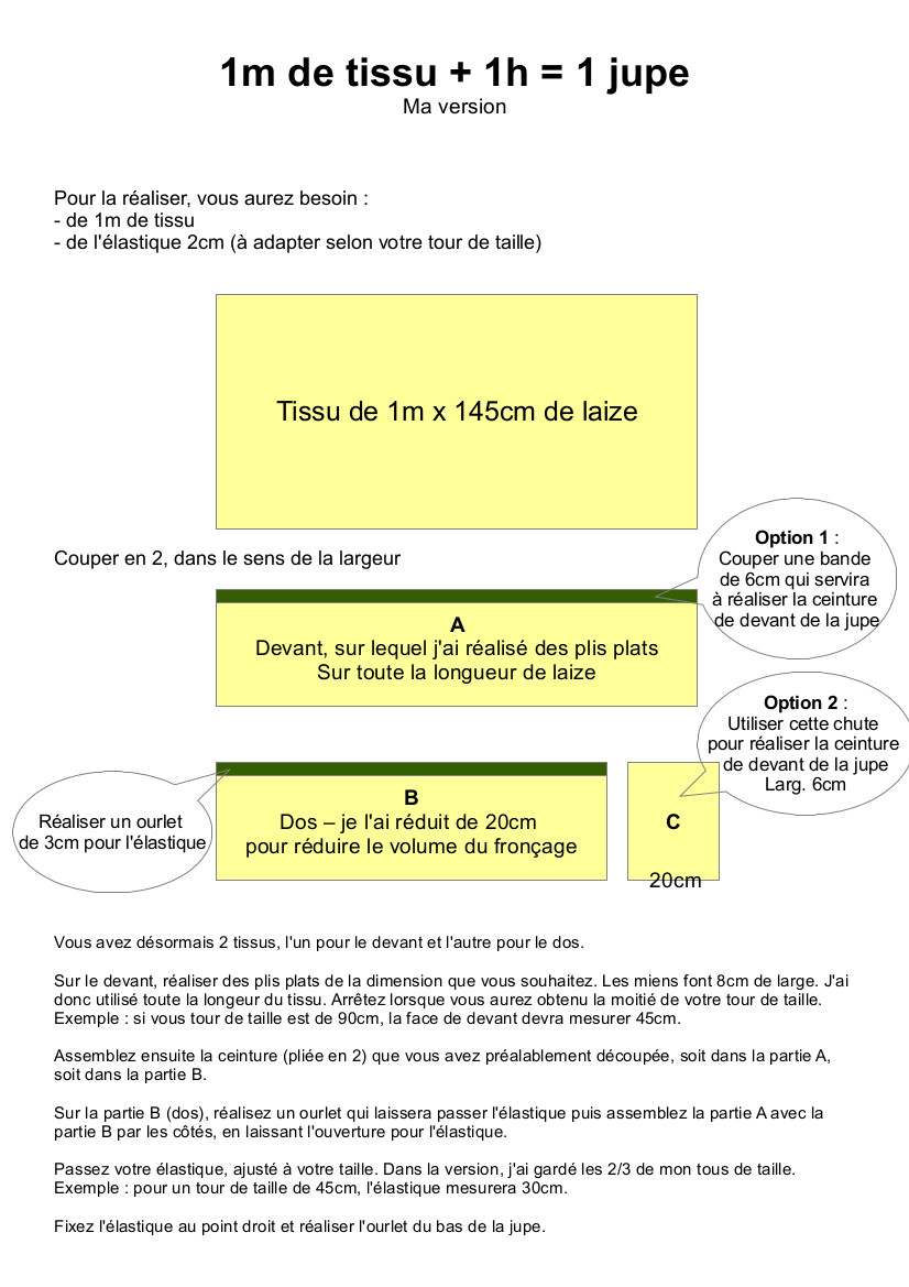 Et comme promis sur ma page facebook, je vous livre mon tuto pour réaliser une jupe à partir de 1m de tissu et en 1h.