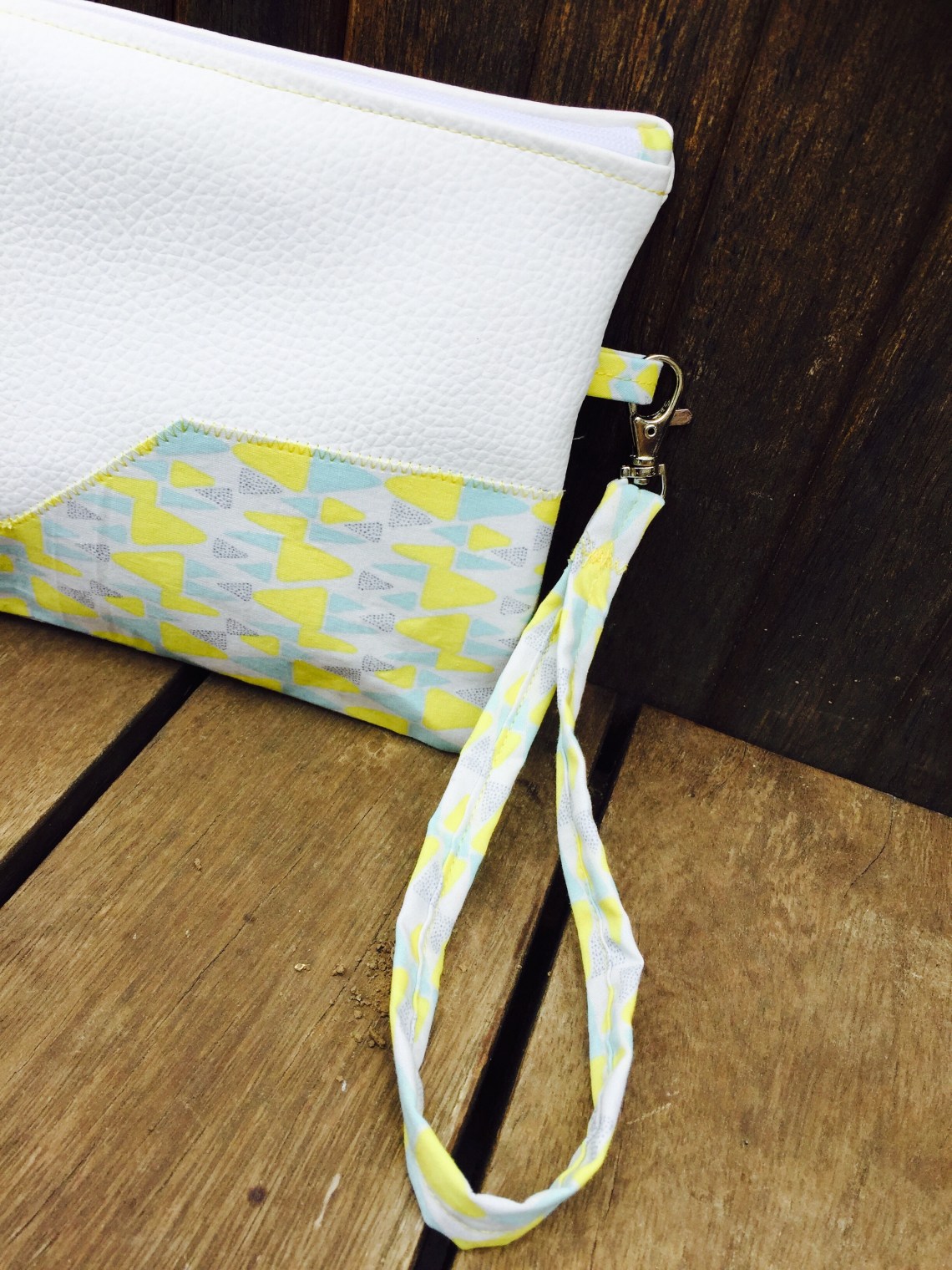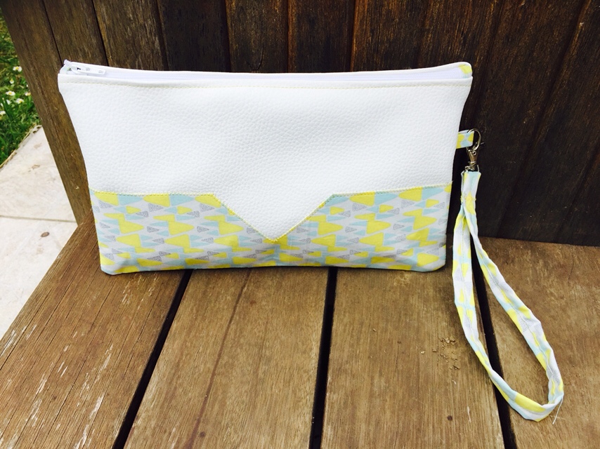Dans ma version, le tissu imprimé est en bas et le simili cuir uni est en haut. Libre à vous de modifier selon vos envies.
