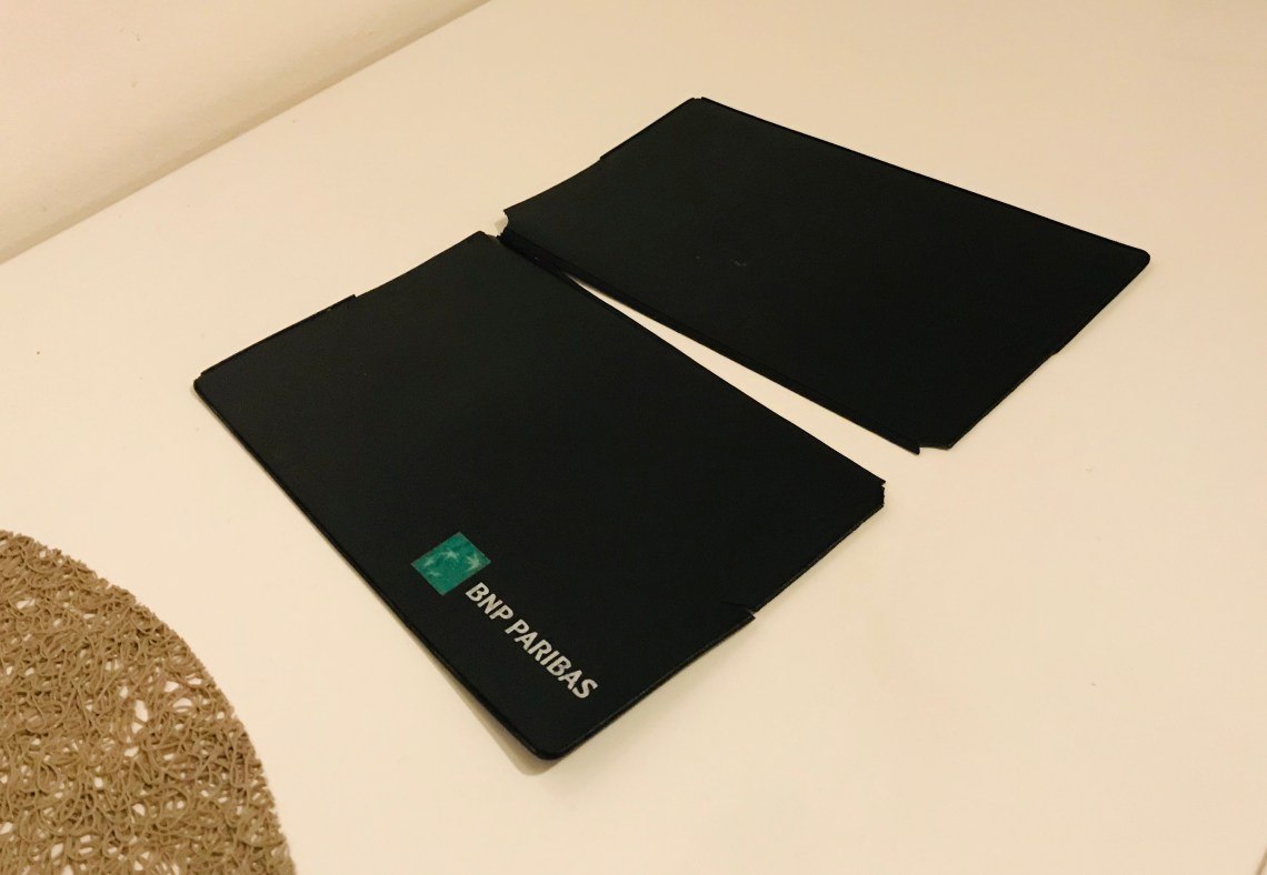 Marre de quémander un porte-chéquier depuis plusieurs mois et parce que le mien ne ressemblait plus à rien. Jugez par vous même !