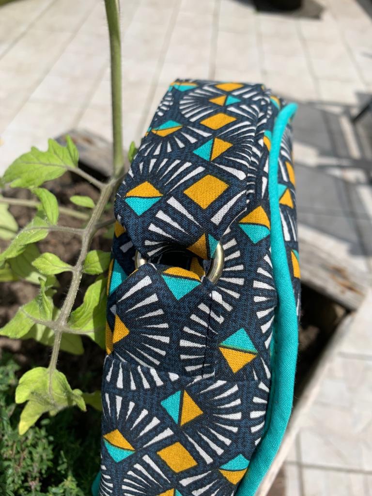 J’ai aussi choisi de rallonger la anse. A l’aide d’une boucle de réglage, ma anse est désormais réglable et je peux porter mon sac en bandoulière ou sur l’épaule.