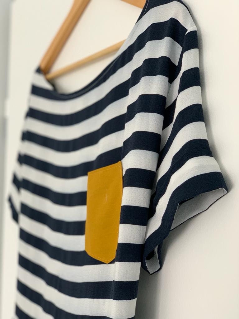 J’ai donc opté pour un crêpe viscose style marinière. Il a un peu de tenue tout en étant fluide.