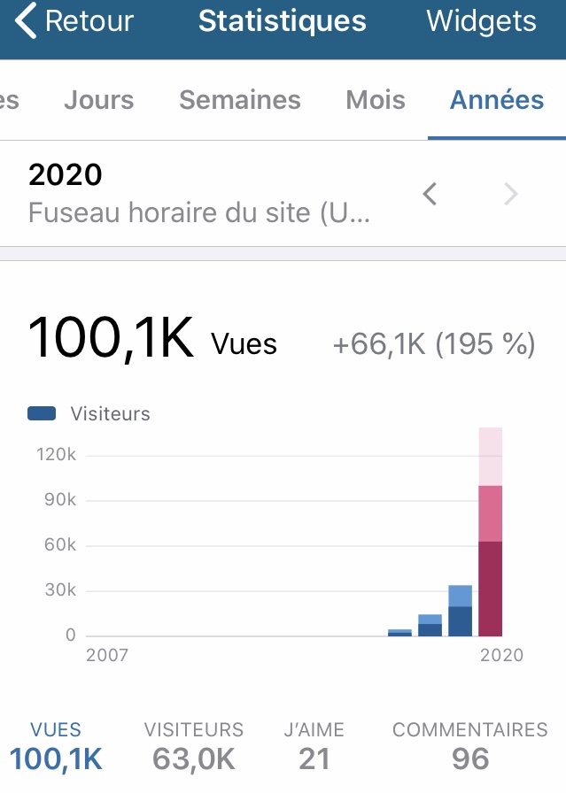 A ma très grande surprise, mon blog a franchi, il y a 8 jours, la barre des 100 000 visites annuelles.