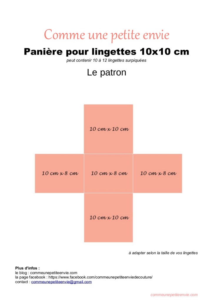 Ces dimensions conviennent pour 10 à 12 lingettes surpiquées ou 5 à 6 lingettes sans surpiqûres.