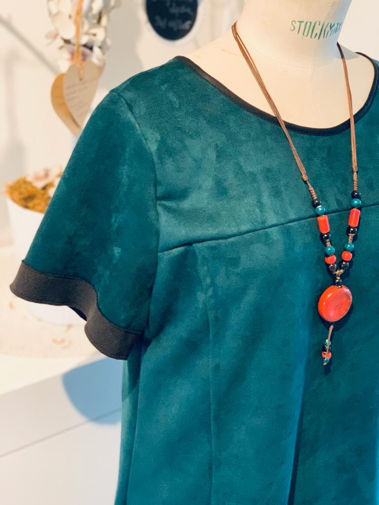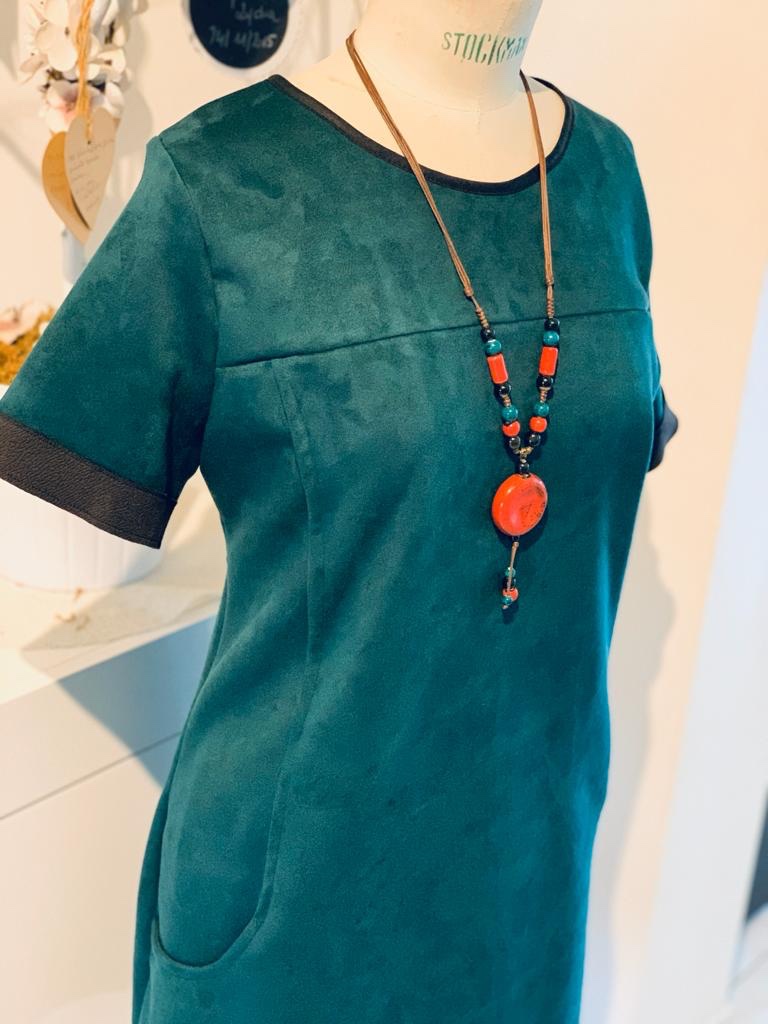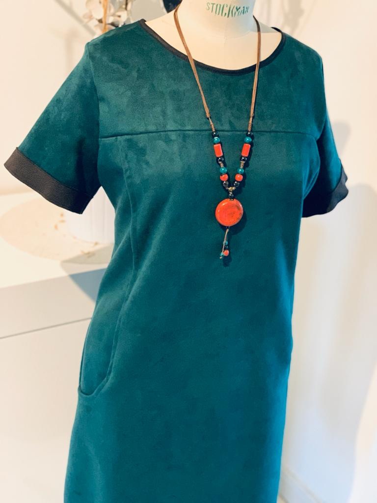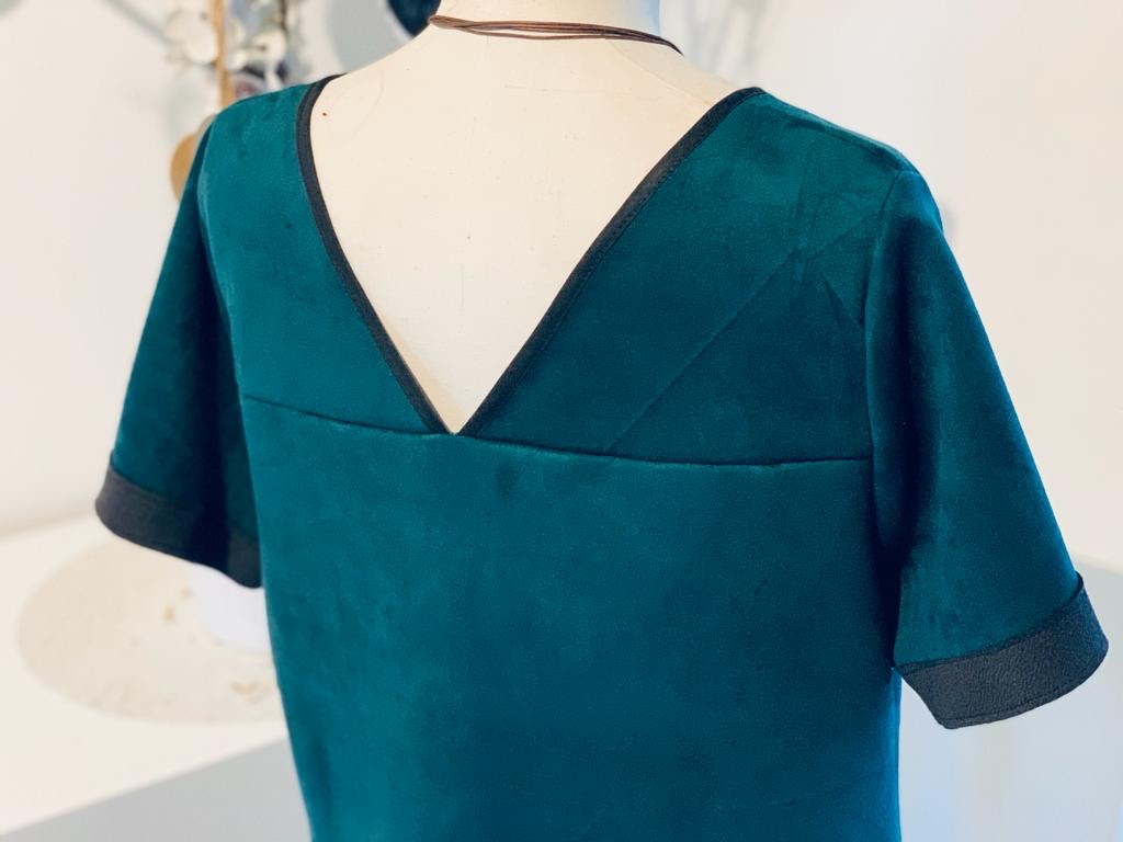 Pour illustrer mon propos, j’ai réalisé la robe Xerea de Pauline Alice dans une suédine elasthane de couleur verte que vous retrouverez au bas de cet article.