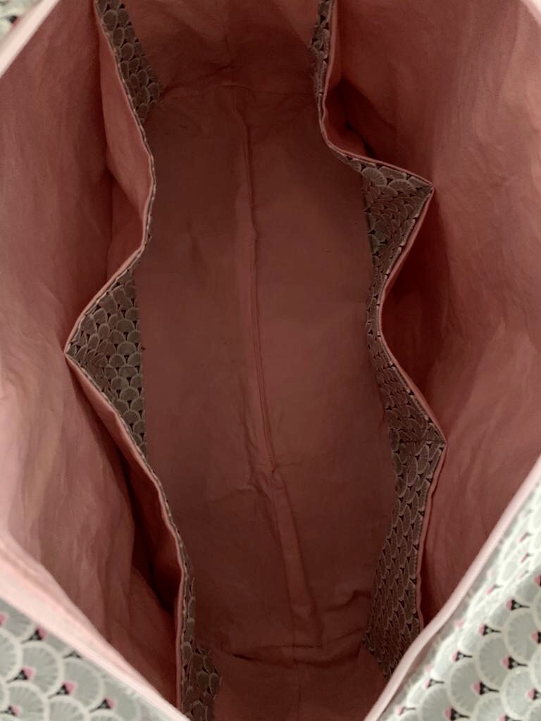 Même si ce sac ne m’est pas destiné (puisqu’il s’agit d’un cadeau de naissance) et que je n’ai pas choisi les couleurs, je suis ravie de cette confection et il semblerait que les futurs parents aussi.