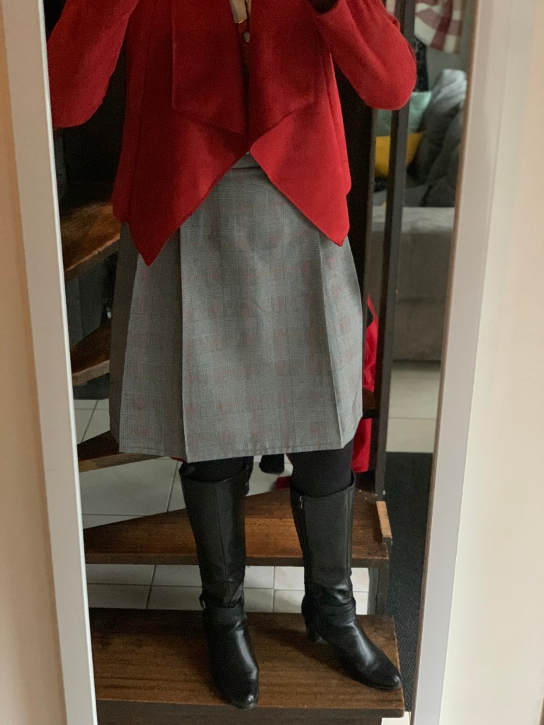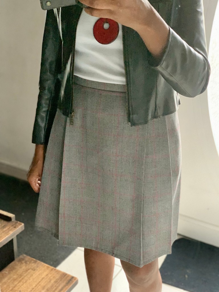 Non, le « Prince de Galles » n’est pas ringard du tout ! Il faut juste faire attention à choisir un modèle de patron jeune et dynamique et l’assortir avec des vêtements cool, comme tu fais. Pour l’ourlet de la rouge, mais je pense que tu aurais dû le fixer à la main : ça éviterait à l’ourlet d’être écrasé et de rebiquer. Si tu n’as pas assez de hauteur pour l’ourlet, tu peux faire un faux ourlet avec un biais de 2 cm de large une fois plié : 1ère couture machine, puis 2ème couture à la main.