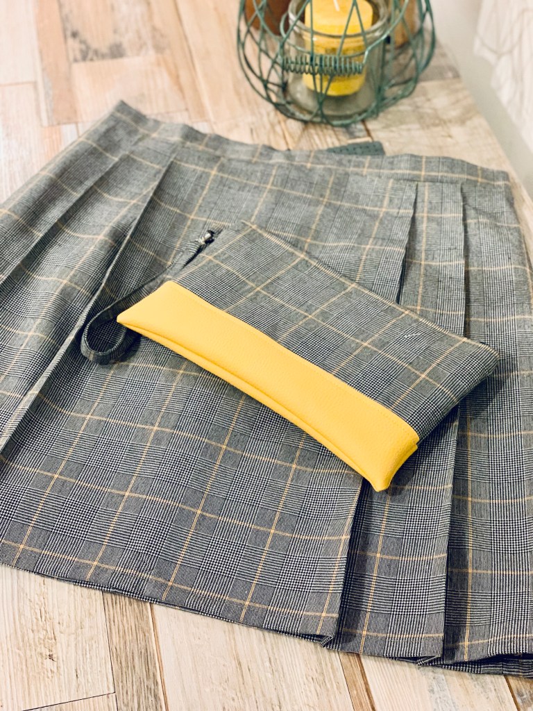Pour ces 2 pièces de tissu, j’avais en tête une idée de jupe courte. Il ne me restait plus qu’à trouver un patron… ou pas. La jupe n’étant pas une pièce compliquée à coudre, j’aurais aussi pu partir sur une création maison.