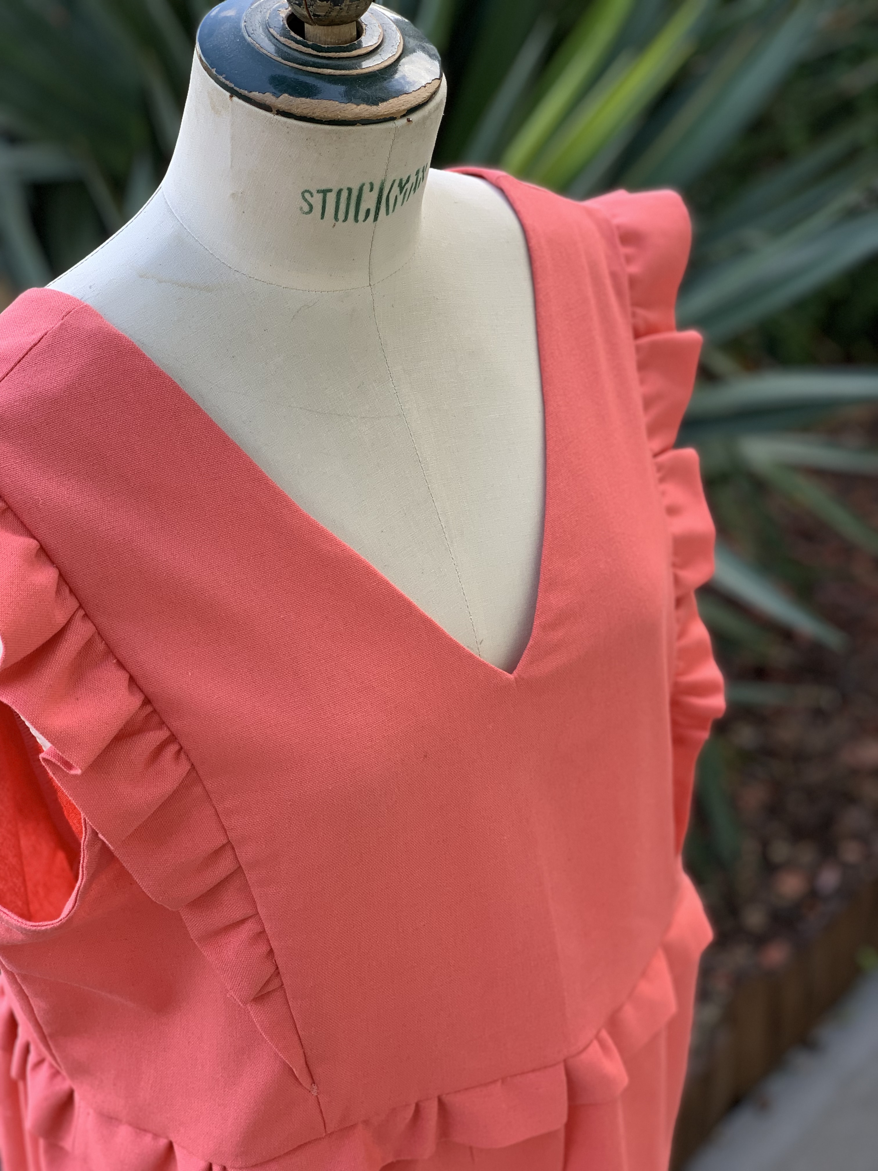 La couture : aucune difficulté majeure hormis la réalisation des fronces – prenez votre temps pour bien les répartir – et des boutonnières.