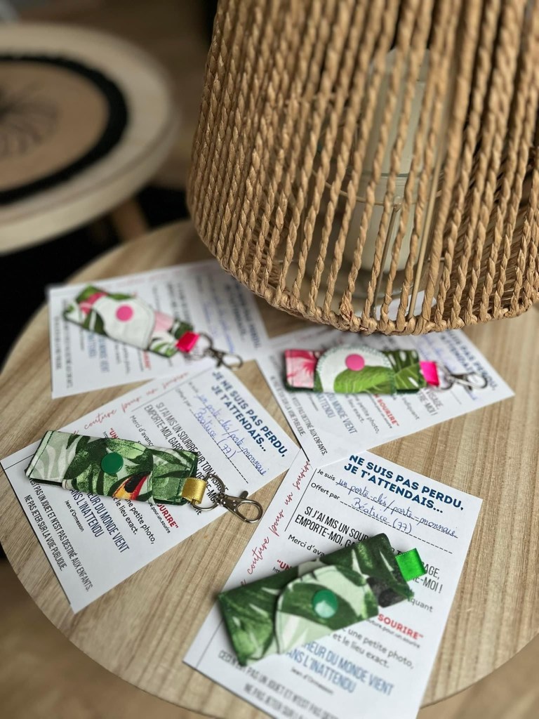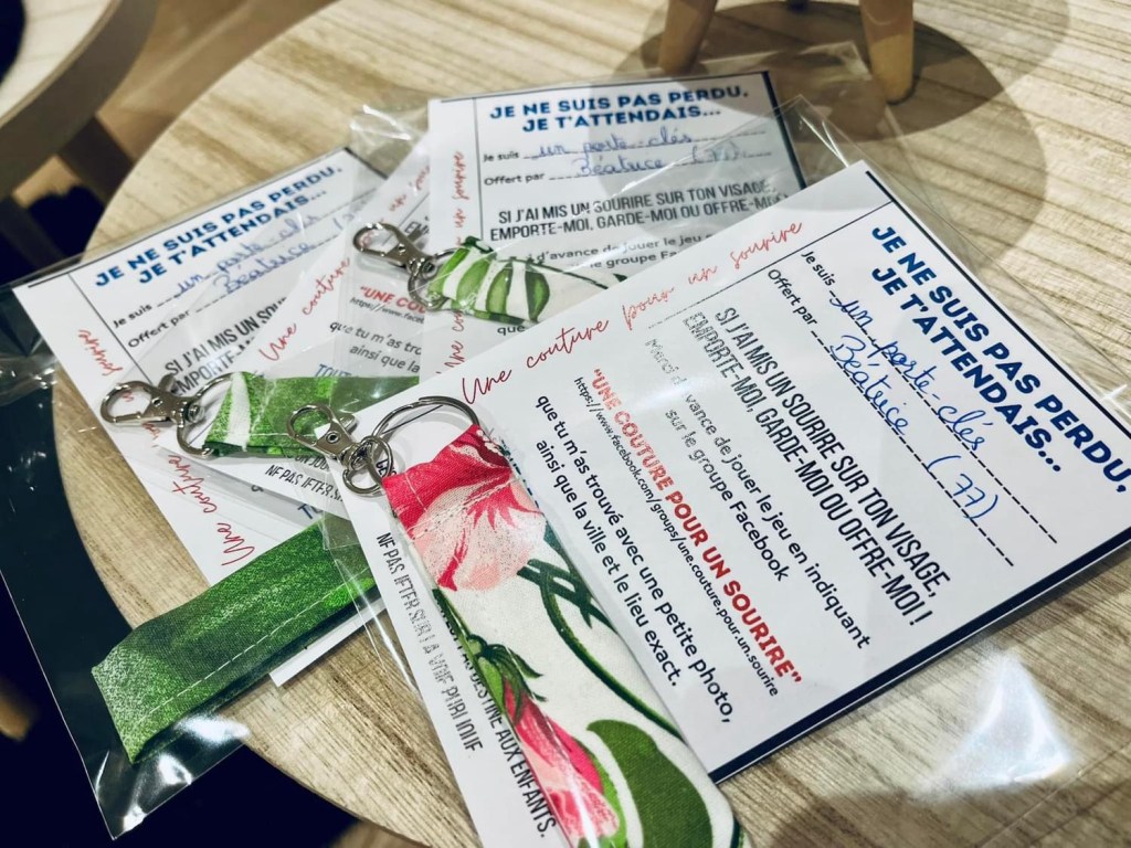 Pour vous lancer, rien de plus simple : il suffit d’imprimer le flyer à joindre à votre confection (disponible en plusieurs langues dans l’onglet fichier du groupe Fbk), réaliser la mini couture de votre choix, glisser le tout dans une pochette transparente (vendues par lot de 10 ou 20, 0,99€ chez Action) et c’est parti !