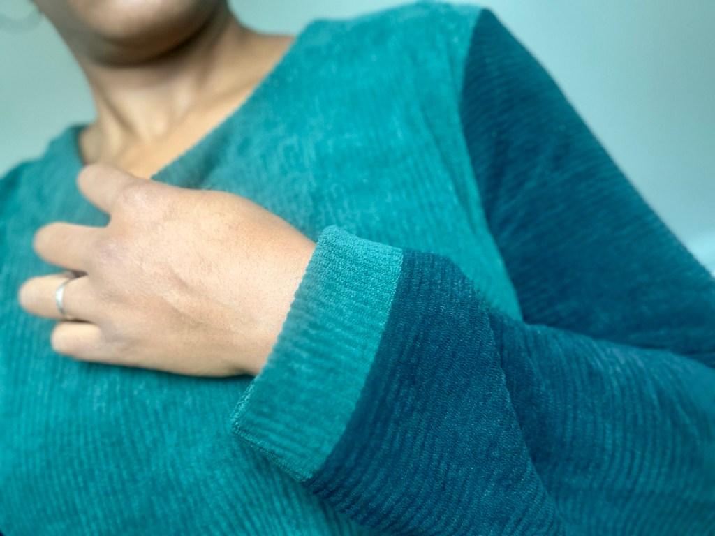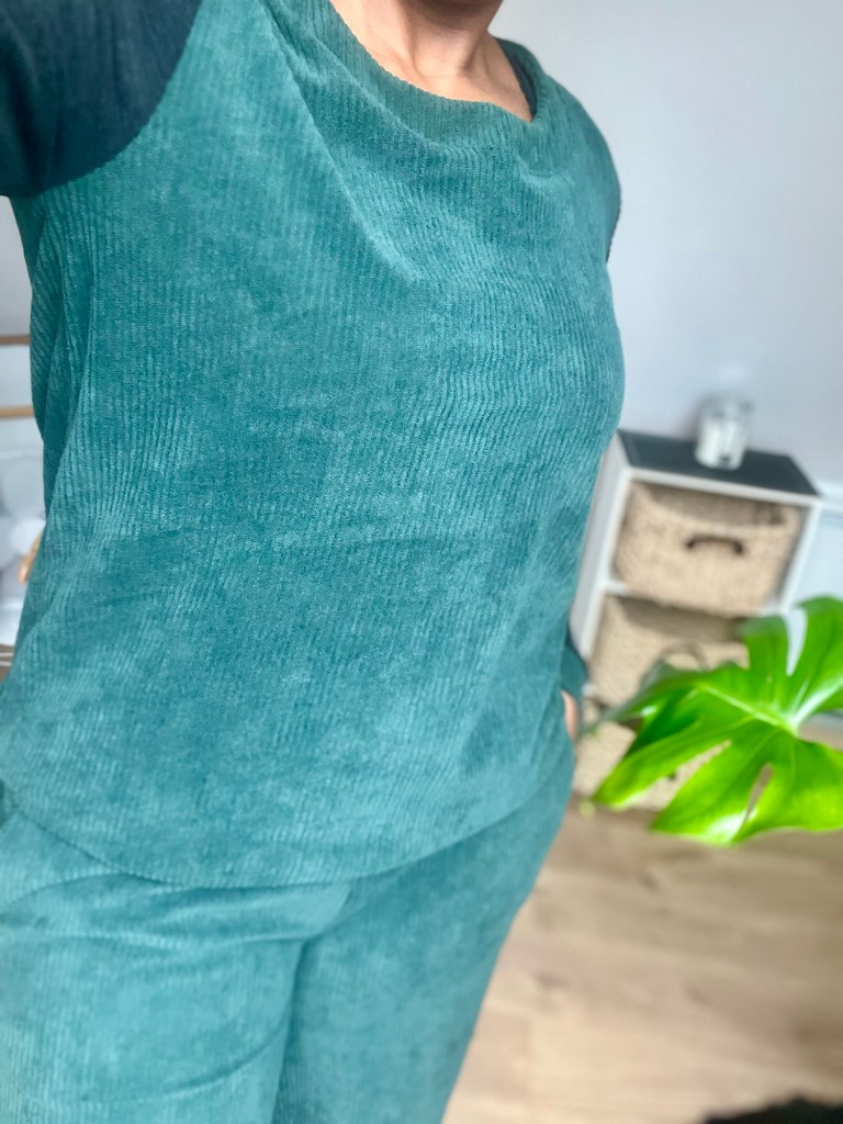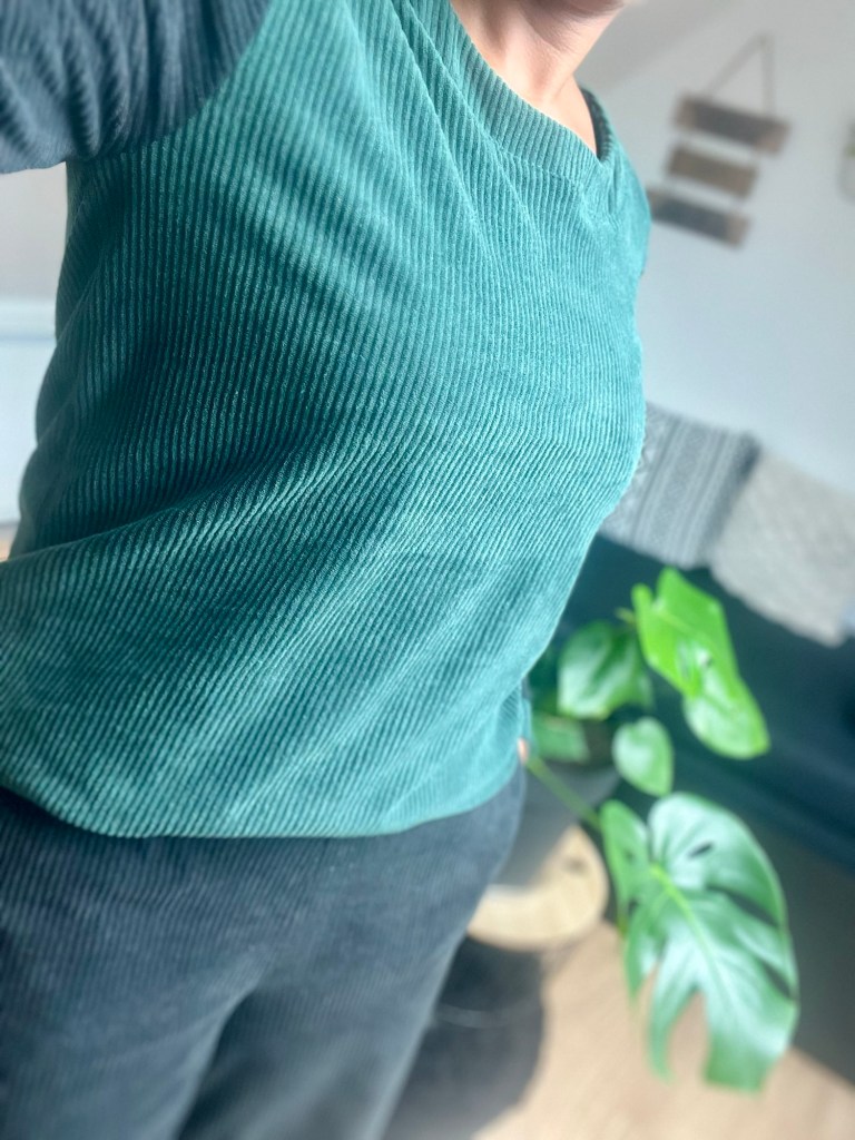 Le jersey velours côtelé est un véritable cocon : doux, extensible, agréable à porter. En l’associant à mon pantalon de la même couleur, j’obtiens un ensemble coordonné, chaud et ultra confortable, idéal pour les journées cocooning ou pour se balader bien au chaud, tout en restant stylée.