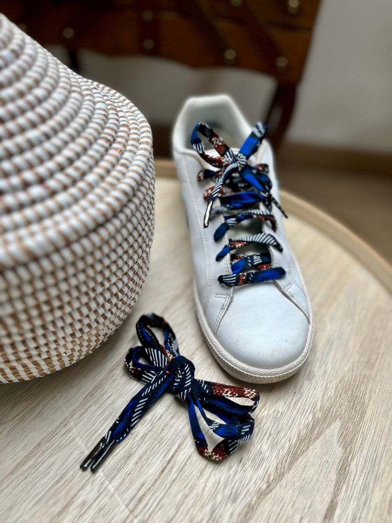Des lacets uniques, colorés, et totalement personnalisés ! Le tissu wax apporte une touche ethnique et joyeuse qui sublime instantanément une paire de chaussures.