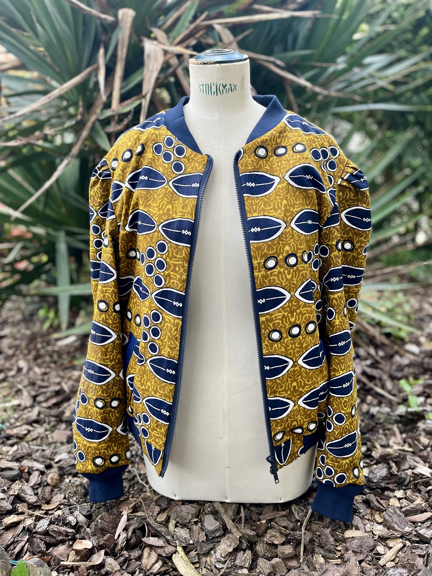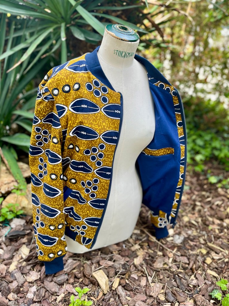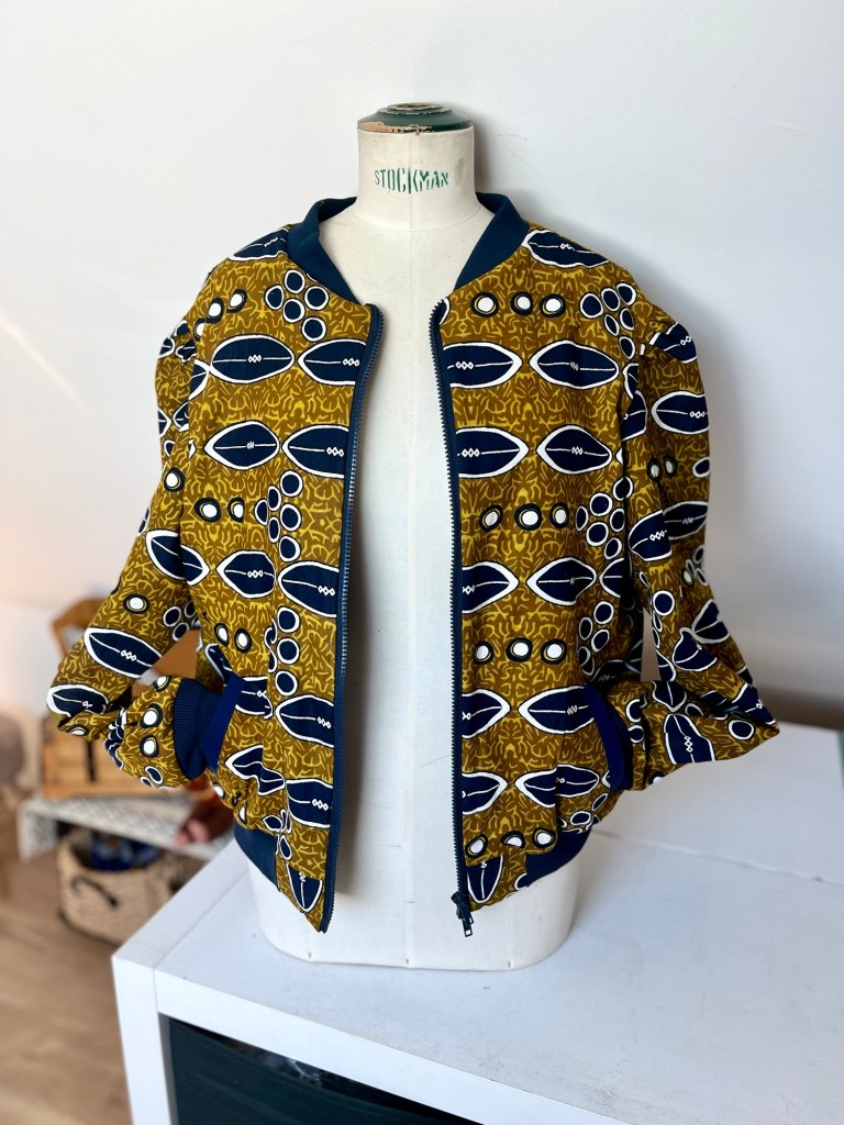 Pour ce bombers, j’ai choisi un tissu wax ramené de mon séjour d’août 25 au Sénégal.