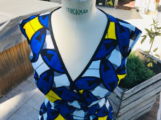 C’est l’histoire d’un tissu déniché dans une boutique de wax et d’un patron de robe qu’on ne présente plus : … Plus
